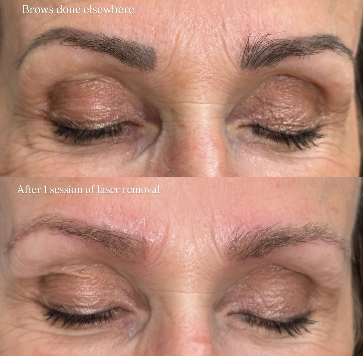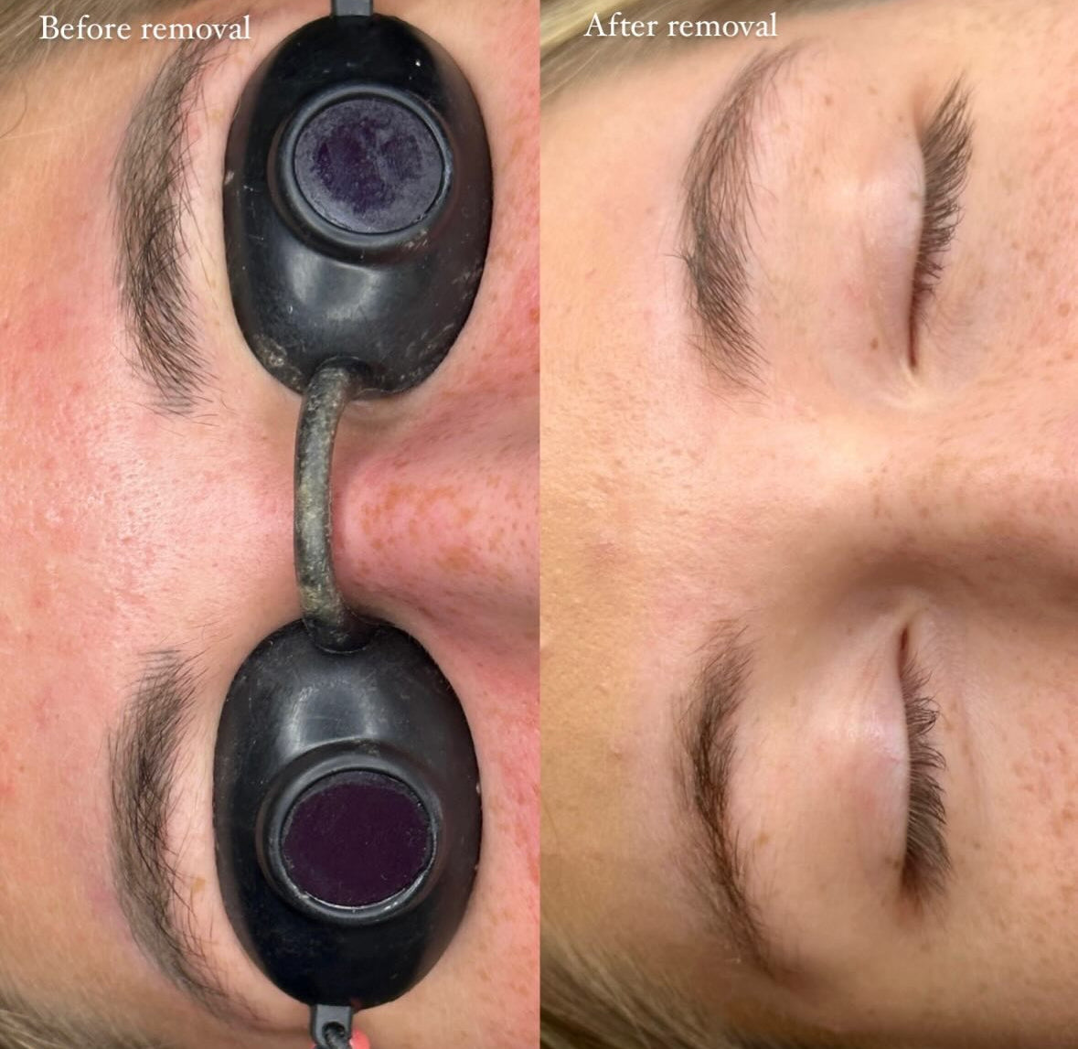 Cosmetic Laser removal uses targeted light pulses to shatter tattoo ink into tiny fragments, which the body then naturally eliminates.This treatment is faster and requires fewer sessions than traditional tattoo removal and is effective for both tattooed and microbladed eyebrows. Multiple sessions, typically several weeks apart, are needed to address different ink depths, with the total number of treatments varying based on factors like tattoo colour, depth, and skin type. Some clients will only need one session.